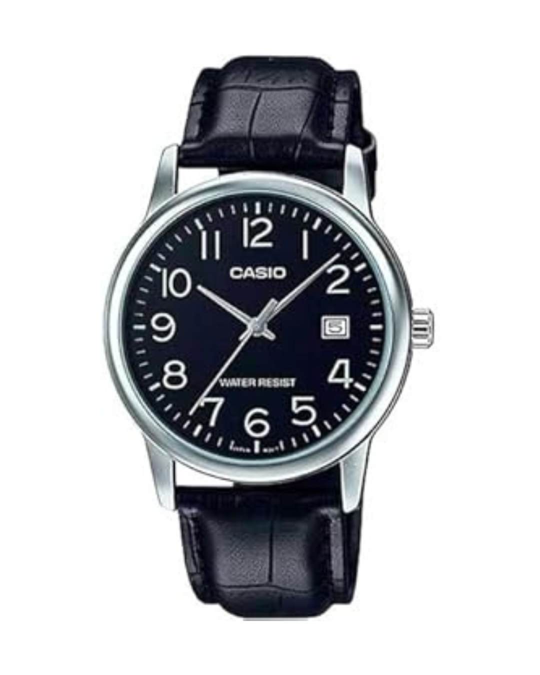 Experience refined simplicity with the Casio MTP-V002L-1B Men’s Wrist Watch. Designed with a sleek black leather strap and a striking black analog dial, this watch offers a versatile look suitable for everyday wear or formal occasions. It features precise Japanese quartz movement and water resistance, giving you both style and reliability. Backed by a 1-year warranty, this is an essential accessory for