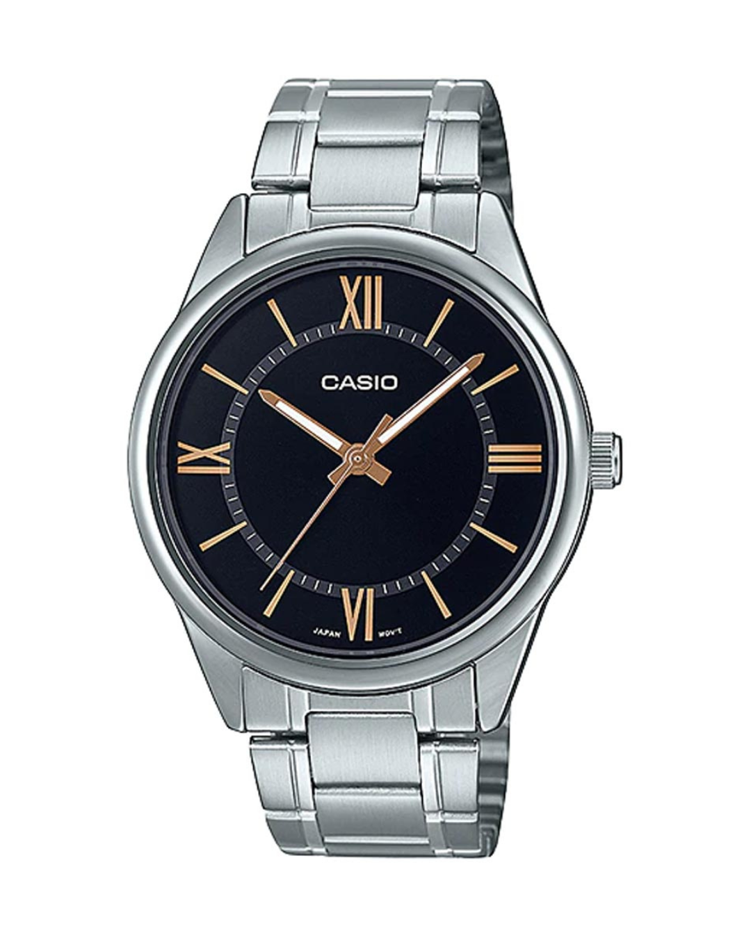 The Casio MTP-V005D-1B5 is a refined men’s analog quartz watch ideal for daily wear. It features a bold black dial with a date window and silver-tone markers for clear readability. Housed in a round alloy case with a durable stainless steel band, this timepiece offers a classic aesthetic suited to both professional and casual settings. Protected by a Hardlex crystal and water resistant up to 50 meters, it ensures reliable performance under normal use. Backed by a 1-year warranty, it’s a smart addition to any watch collection.