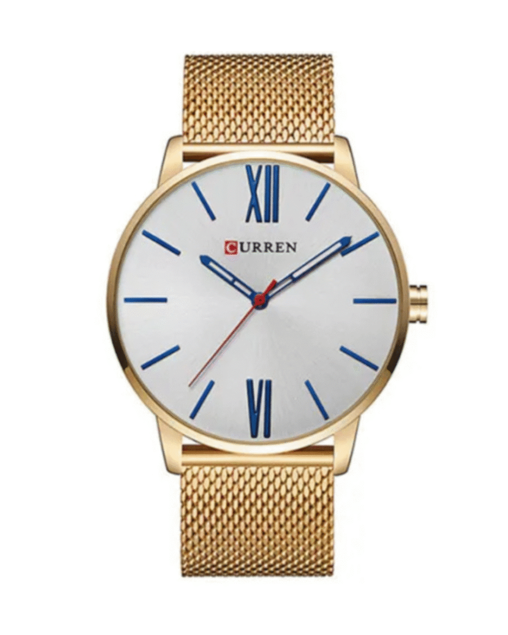 The Curren 8238 is a sleek and modern men’s wristwatch that blends classic design with contemporary style. Featuring a golden mesh stainless steel band and a clean off-white dial, this watch is perfect for casual and formal wear alike. The durable alloy case, crystal, and 30-meter water resistance make it a reliable timepiece for daily use. A lightweight build and slim 8mm profile ensure all-day comfort and sophistication.