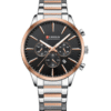 The stainless steel two-tone strap adds a sophisticated touch, making this watch suitable for both formal and casual wear. With 3ATM water resistance, it offers protection against splashes, rain, and everyday moisture – though it is not suitable for swimming or showering.