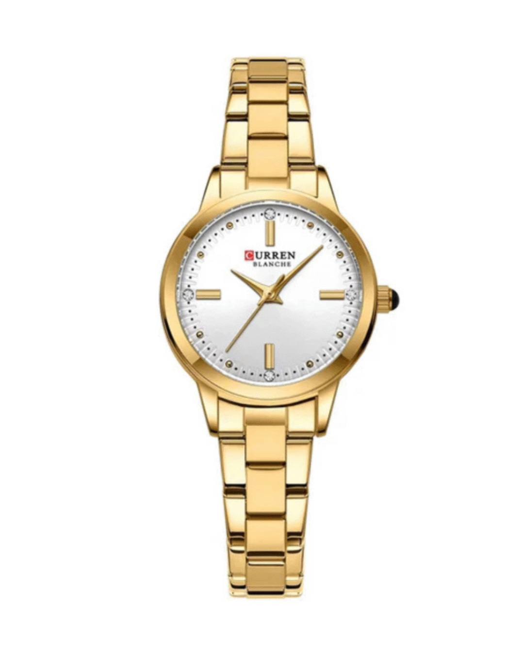 Enhance your wardrobe with the timeless charm of the CURREN 9094 women’s wristwatch in gold. Designed with a sturdy alloy case and sleek golden band, this watch features a bold 41mm white dial for a clean, sophisticated look. Whether for casual wear or special occasions, its quartz movement and 3ATM water resistance ensure it stays both fashionable and functional. Delivered in an original branded box, it’s a great gift for yourself or a loved one.