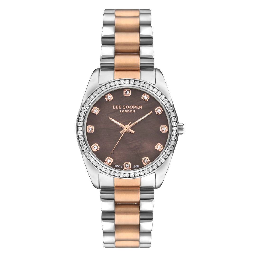 The Lee Cooper LC07478.540 women’s watch is a perfect fusion of elegance and functionality, designed to complement your everyday style. Part of the [Collection Name] collection, this timepiece features a sophisticated Silver and Rose Gold super metal case that enhances its luxurious appeal. The round case, paired with a sleek metal band in matching Silver and Rose Gold tones, creates a stunning contrast against the rich brown dial.