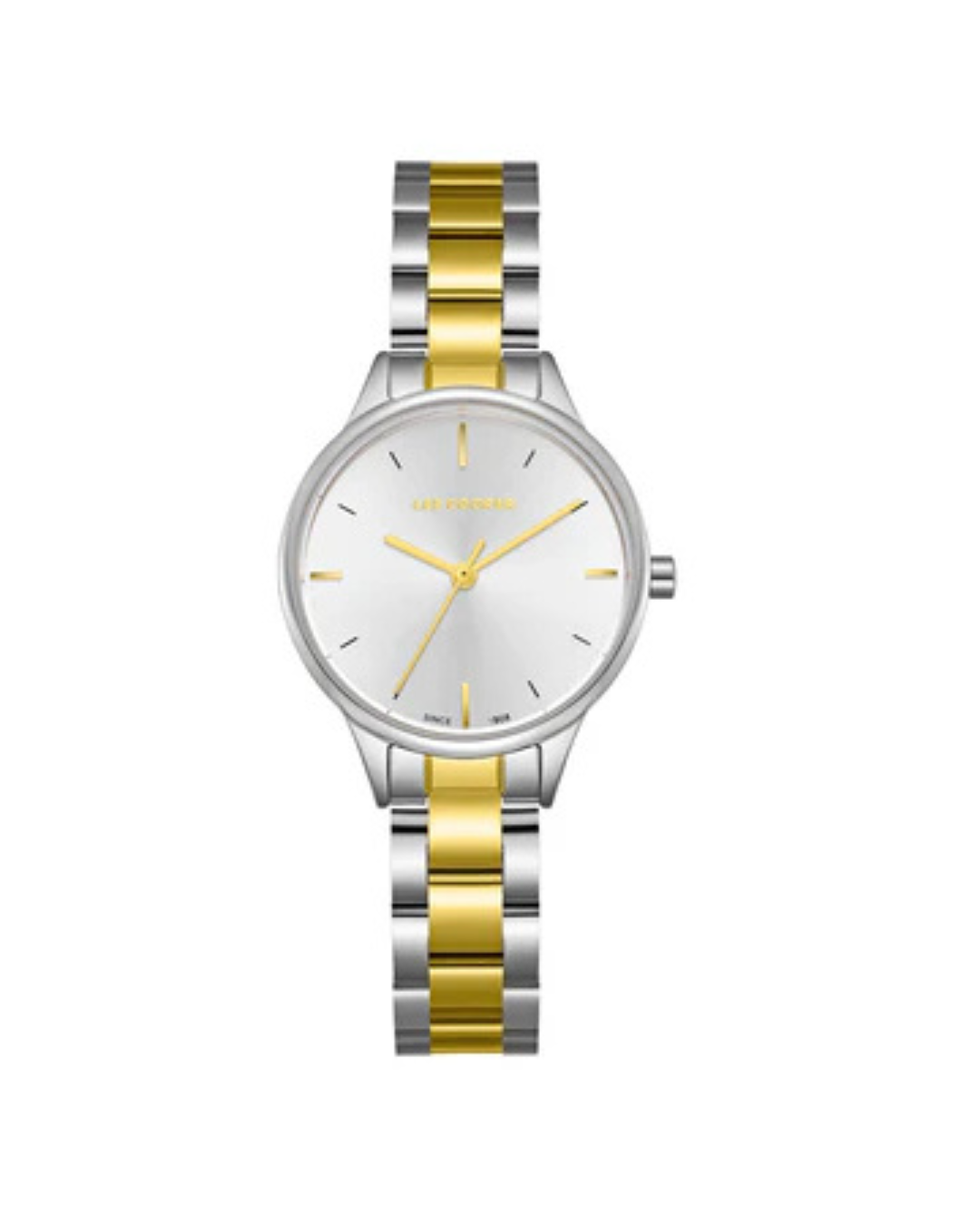 The Lee Cooper LC08080.230 ladies wristwatch is designed for those who appreciate minimalist charm and timeless elegance. It features a durable 30mm Super Metal case with a beautiful silver and gold-tone plating that adds sophistication to any outfit.