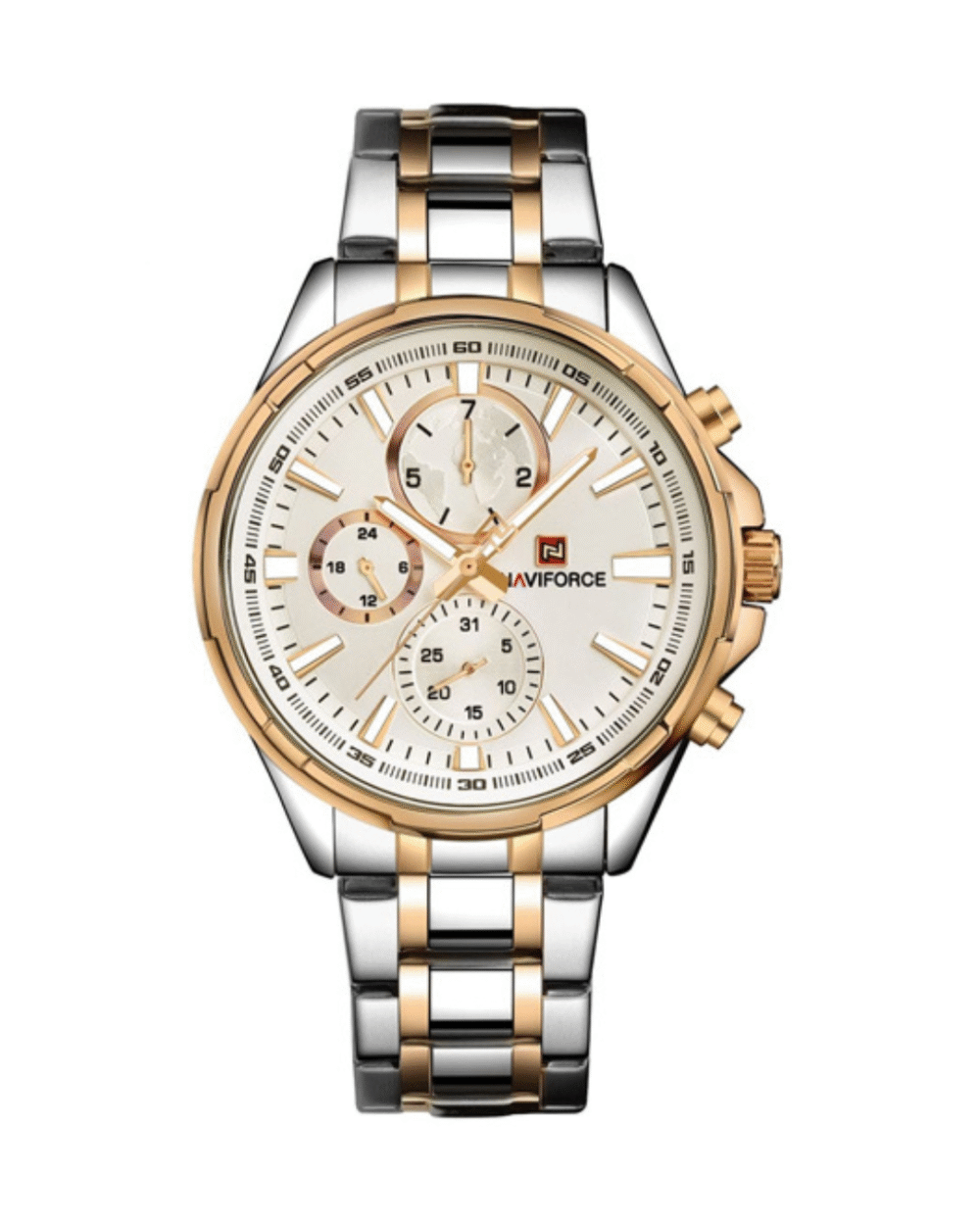 Ahmed Watches offers branded NaviForce 9089 two tone stainless steel band & white chronograph dial gent’s standard watch in Pakistan. Cash on delivery available for your NaviForce watch parcel in Karachi, Lahore, Islamabad, Peshawar, Quetta & other cities in Pakistan. Shipping details to destination in Pakistan are as below: