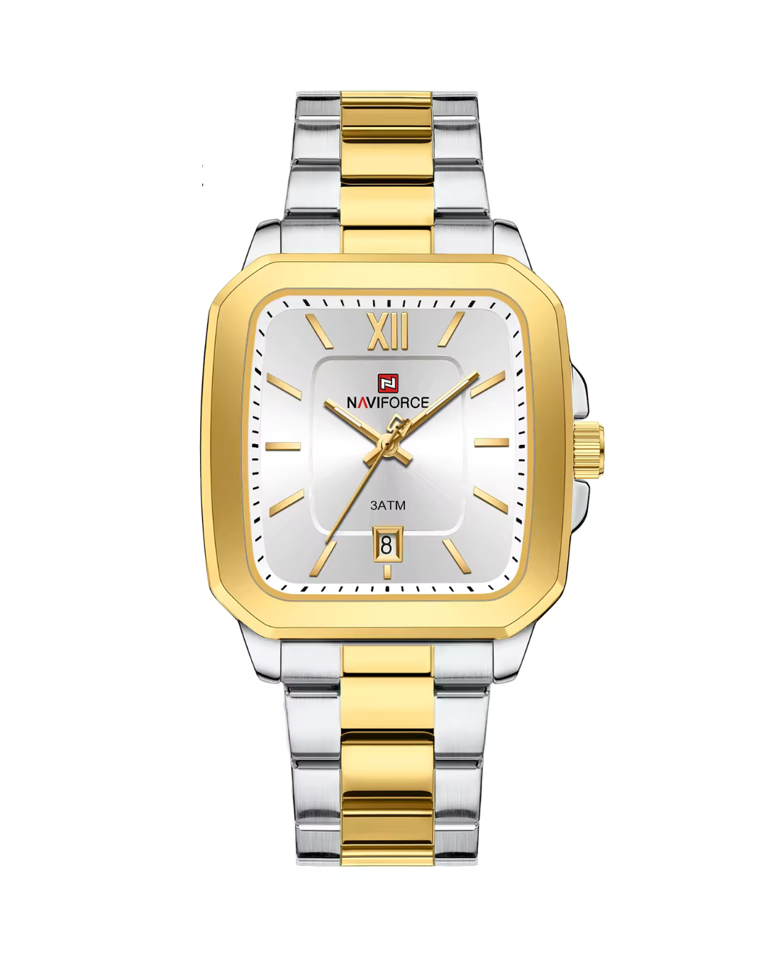 The Naviforce NF9239 is a modern square-shaped men’s watch featuring a durable stainless steel band, date function, and 3ATM water resistance. A stylish blend of sport and luxury for everyday wear.