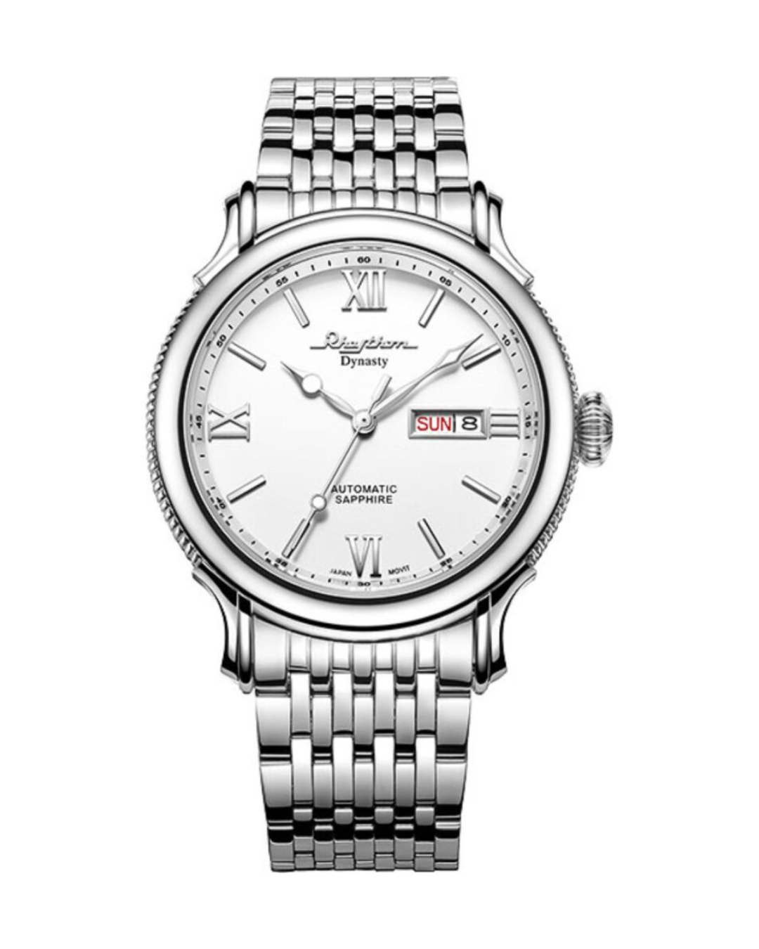 The white dial is clean and classic, featuring both a date and day display to keep you organized throughout the week. With 50-meter water resistance, this watch is designed for everyday wear, whether you’re at work, attending a special event, or just out for a casual outing. The stainless steel band adds a sleek and stylish look, making this watch versatile for any occasion.