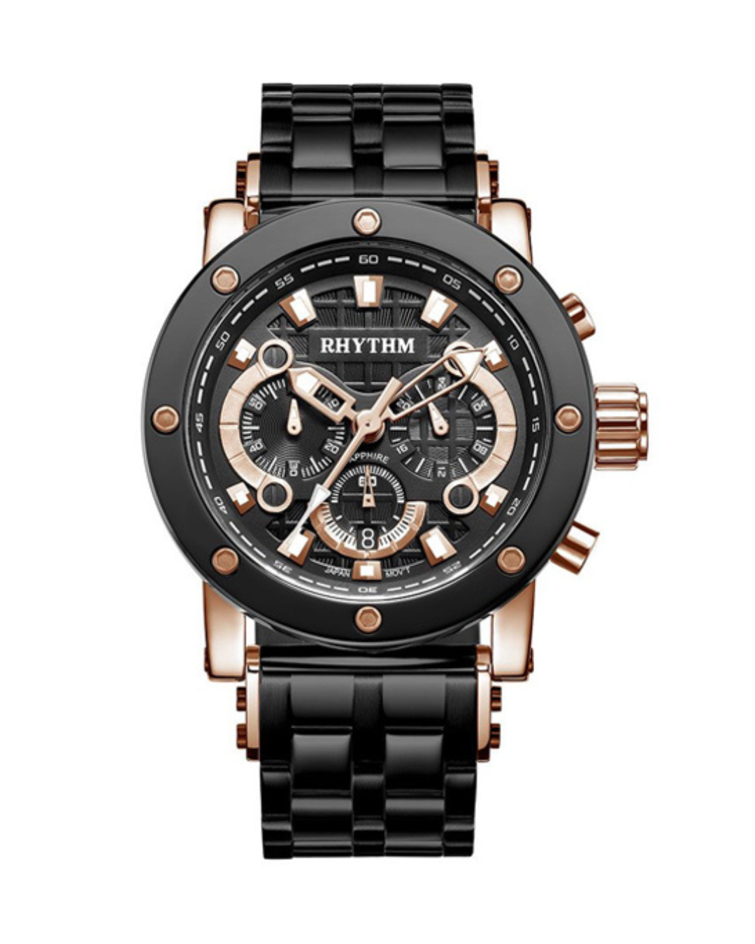 The watch is powered by a precise quartz movement and protected by sapphire glass, ensuring both scratch resistance and clarity. With a water resistance rating of 100 meters, the Rhythm I1203S02 is built to withstand daily wear and aquatic activities, making it the ideal choice for both work and play.