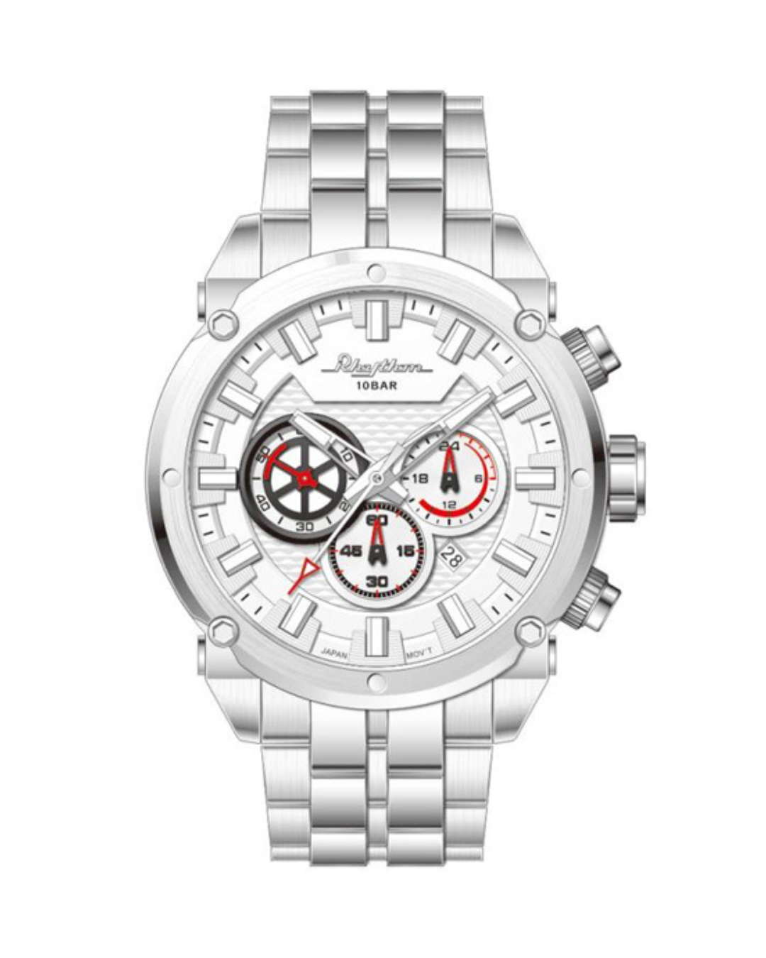 The RHYTHM SI1612S01 men’s classic chronograph watch is designed to offer both functionality and timeless style. Featuring a sleek white dial and a stainless steel case measuring 48 mm, this watch is a perfect blend of elegance and durability. The sapphire glass ensures that the watch remains scratch-resistant and maintains its pristine appearance over time.